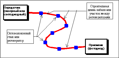 Рисунок 1. Типичная волоконно-оптическая линия связи
