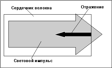 Всегда‚ когда свет‚ распространяющийся в каком-нибудь материале (например‚ в оптическом волокне)‚ попадает в материал с другой плотностью (например‚ в воздух)‚ часть световой энергии (до 4%) отражается назад‚ к источнику света‚ в то время как остальная световая энергия продолжает распространяться дальше. Резкие изменения плотности материала имеют место на концах волокна‚ у обрывов волокна и‚ иногда‚ у оптоволоконных стыков. Количество отраженного света зависит от величины изменения плотности материала (которая характеризуется показателем преломления – более высокий показатель преломления означает большую плотность)‚ а также от того угла‚ под которым свет падает на поверхность раздела между двумя материалами. Это явление называется френелевским отражением. Оно используется в оптическом рефлектометре для точного определения мест обрывов волокна.