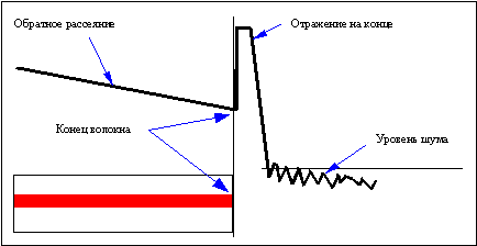 При посылке светового импульса по волокну часть импульса натыкается на имеющиеся в стекле микроскопические частицы (которые называются "примесью") и рассеивается во всех направлениях. Это явление называется релеевским рассеянием. Часть световой энергии – около 0‚0001% – рассеивается назад‚ в направлении‚ противоположном направлению распространения импульса; это называется обратным рассеянием. Поскольку в процессе изготовления волокна примеси распределяются равномерно по всему волокну‚ это явление рассеяния возникает по всей его длине.